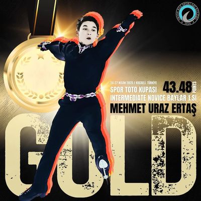 Türkiye Buz Pateni Federasyonu tarafından 24-27 Nisan 2025 tarihlerinde Kocaeli’nde düzenlenen Spor Toto Kupası’nda, 43.48 toplam puan alarak birinci olan sporcumuzu tebrik ederiz.
